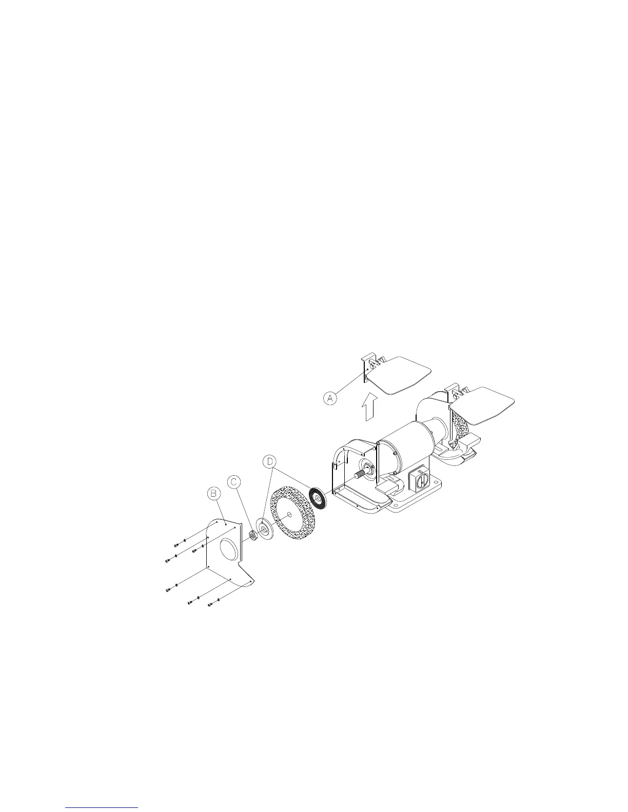 The new grinding wheel is to be mounted between the two flanges (D) and the reverse nut
