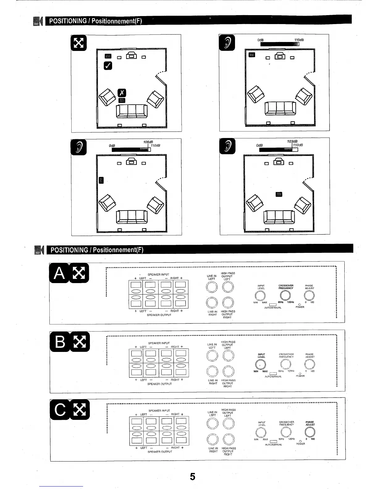 KEF PSW1000 - POSITIONING; Visual Positioning Examples; Connection Type Diagrams
