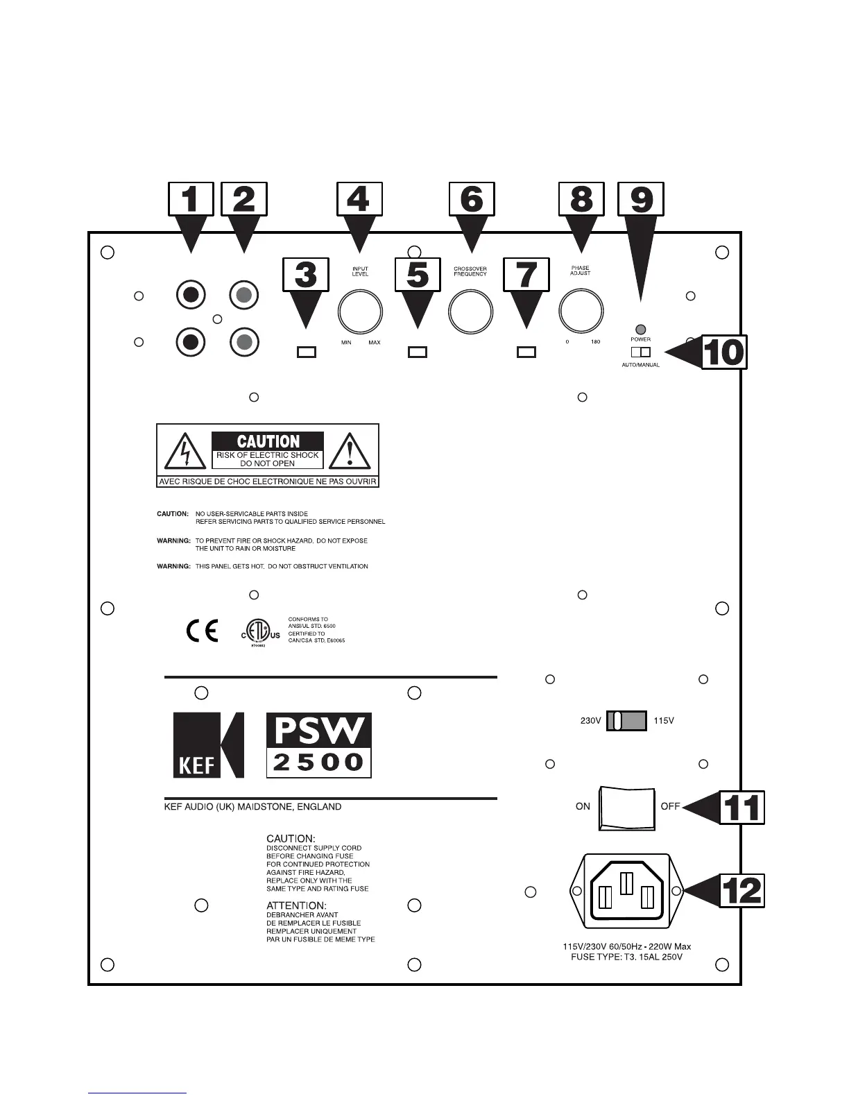 KEF PSW2500 - 6. CONTROLS AND SOCKETS