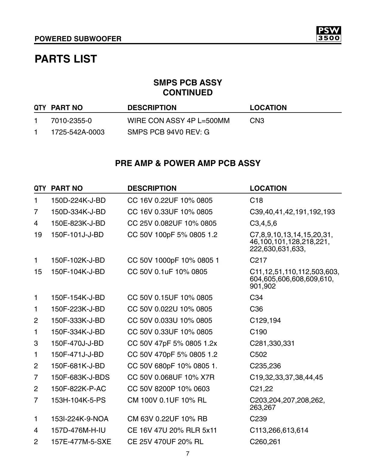 7 150D-334K-J-BD CC 16V 0.33UF 10% 0805 C39,40,41,42,191,192,193