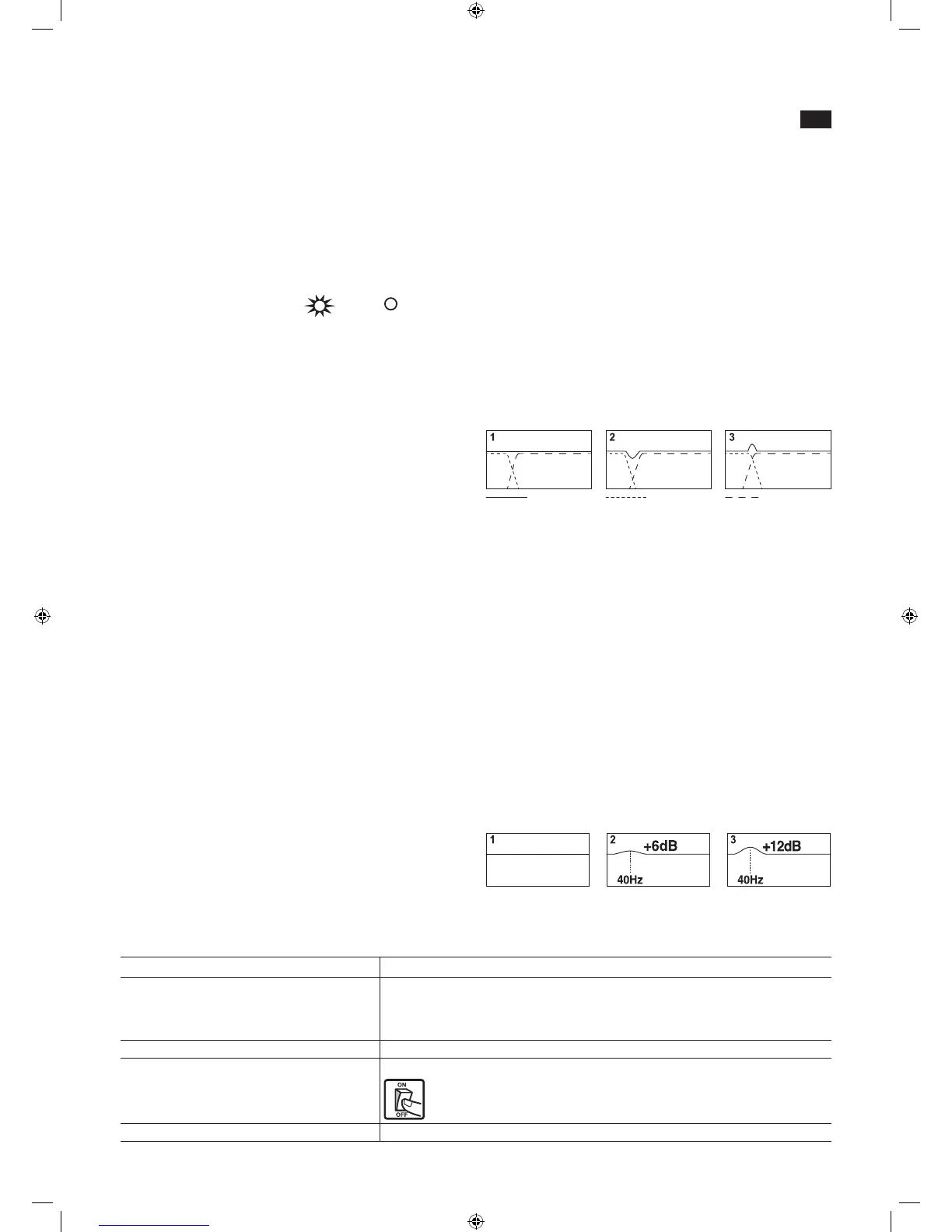 調整可能範囲は 40Hz〜140 Hzで、12dB/oct. で減衰します。カットオ