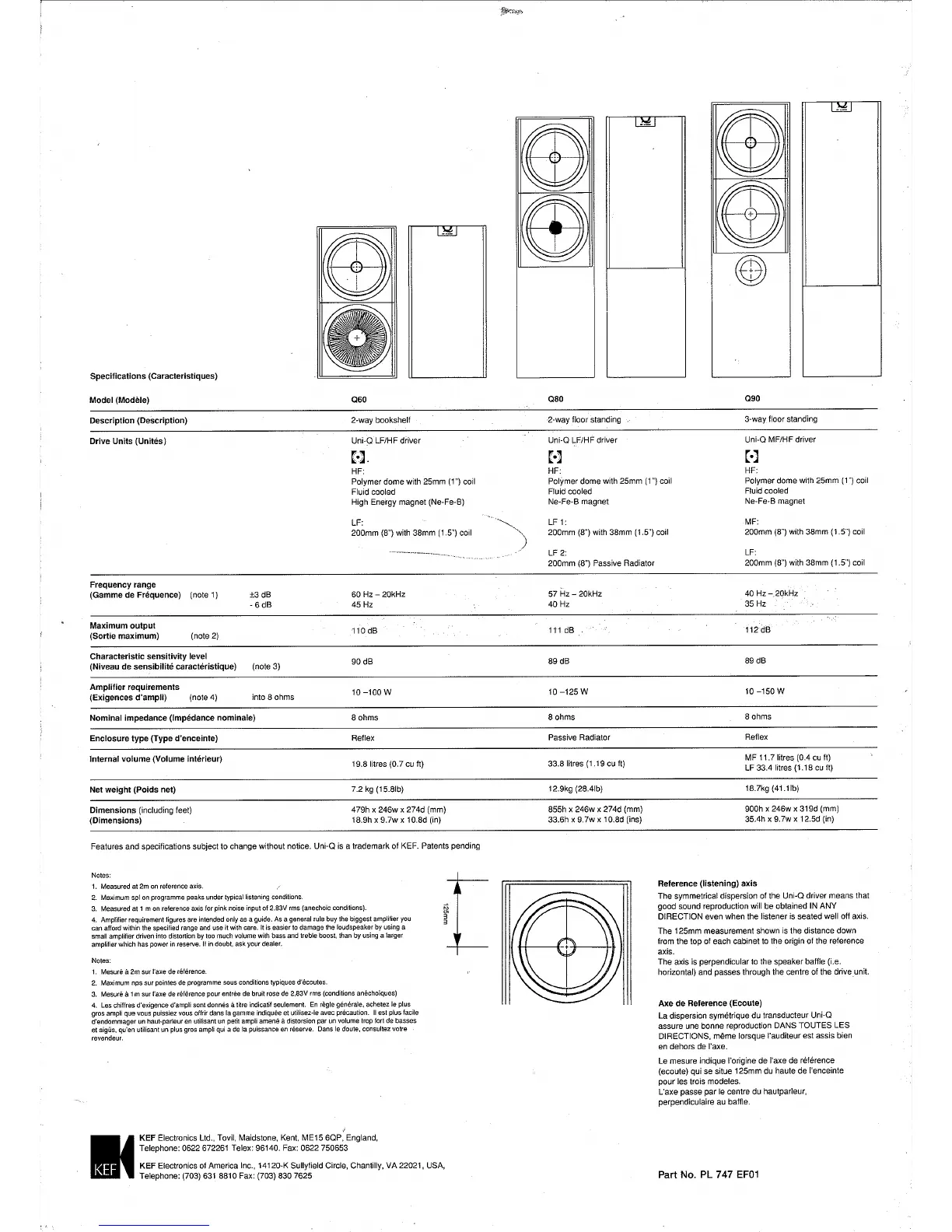 KEF Q60 - Technical Specifications; Q60 Specifications; Q80 Specifications; Q90 Specifications
