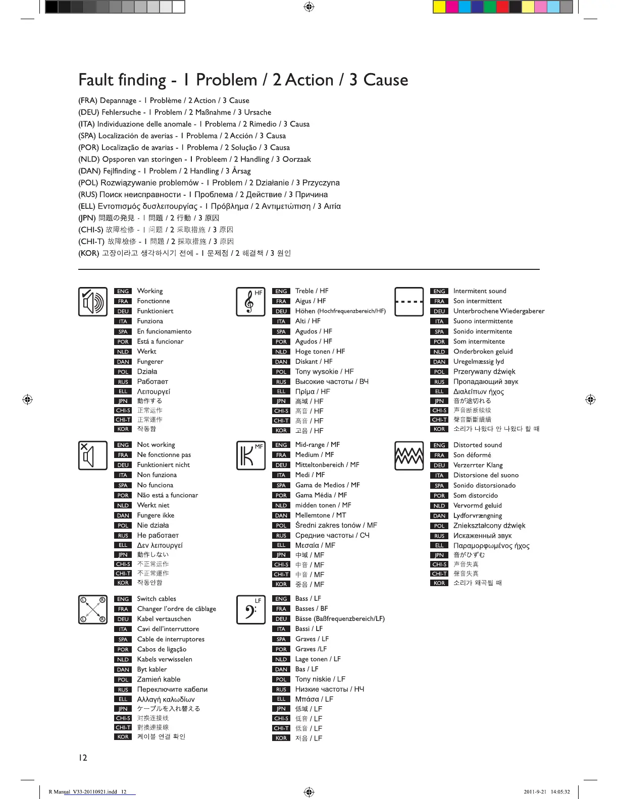 KEF R300 - Fault Finding Guide; Audio Frequency Issues; Sound Quality Problems; Connection Troubleshooting