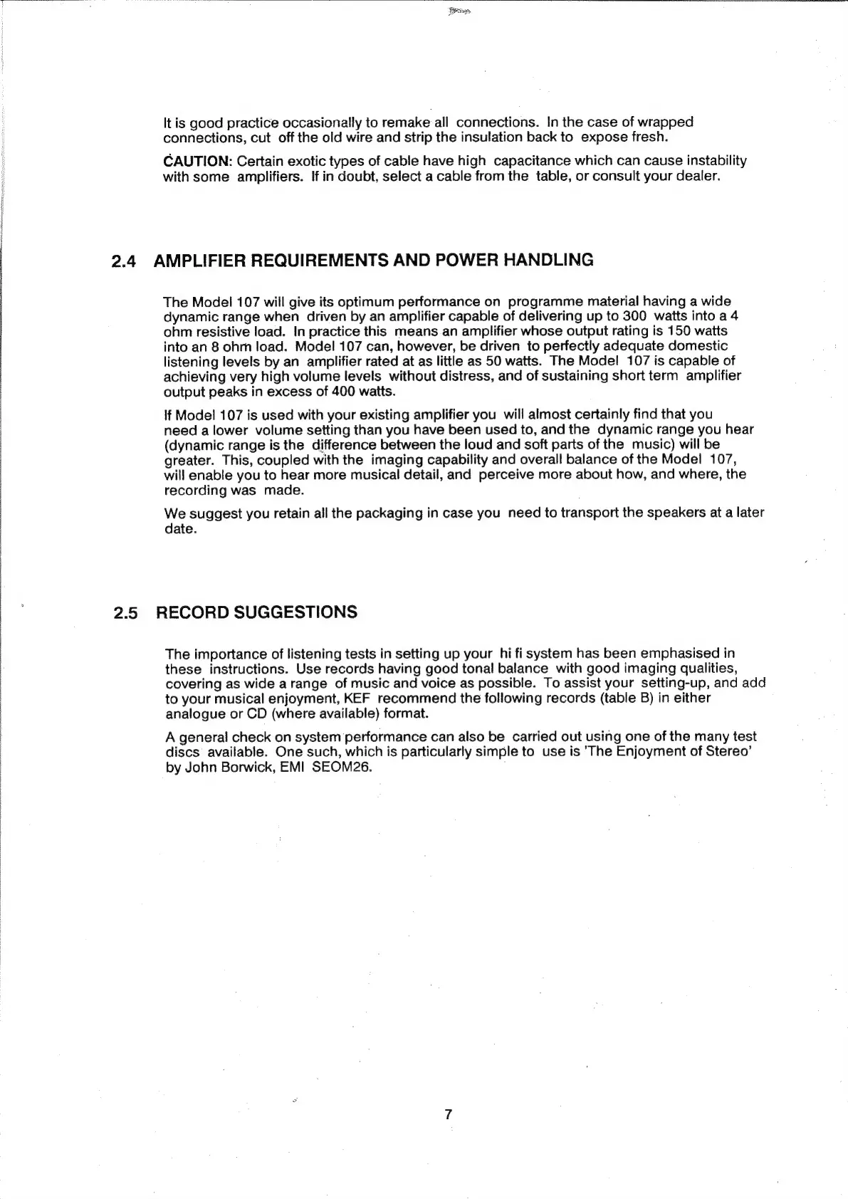 KEF REFERENCE 107 - Amplifier Requirements and Power Handling; Record Suggestions