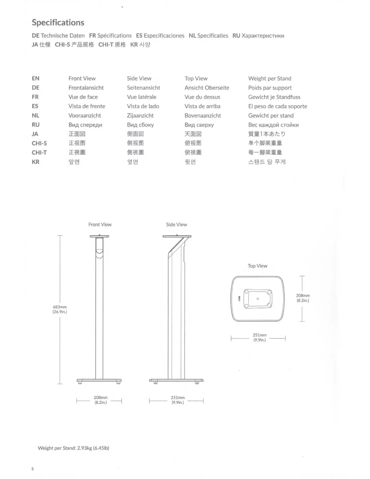 Stand: 2.93kg (6.451b)