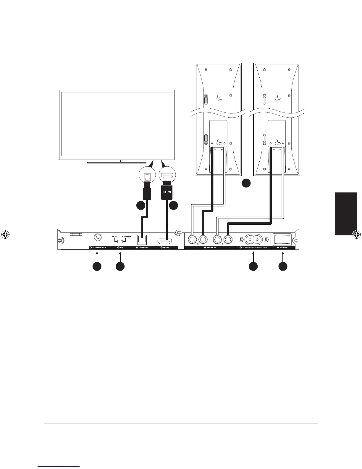 3 Entrada óptica (opcional) Conecte el cable óptico a la TV (Saltee este paso si ya conectó a la