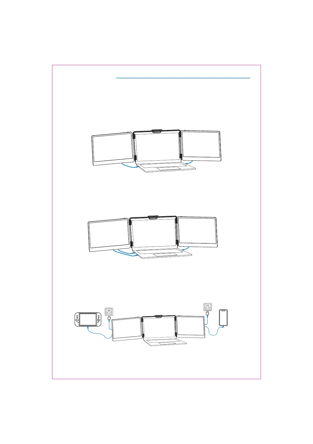 connect one monitor using the USB-C cable. Then connect the other monitor using the USB-A to