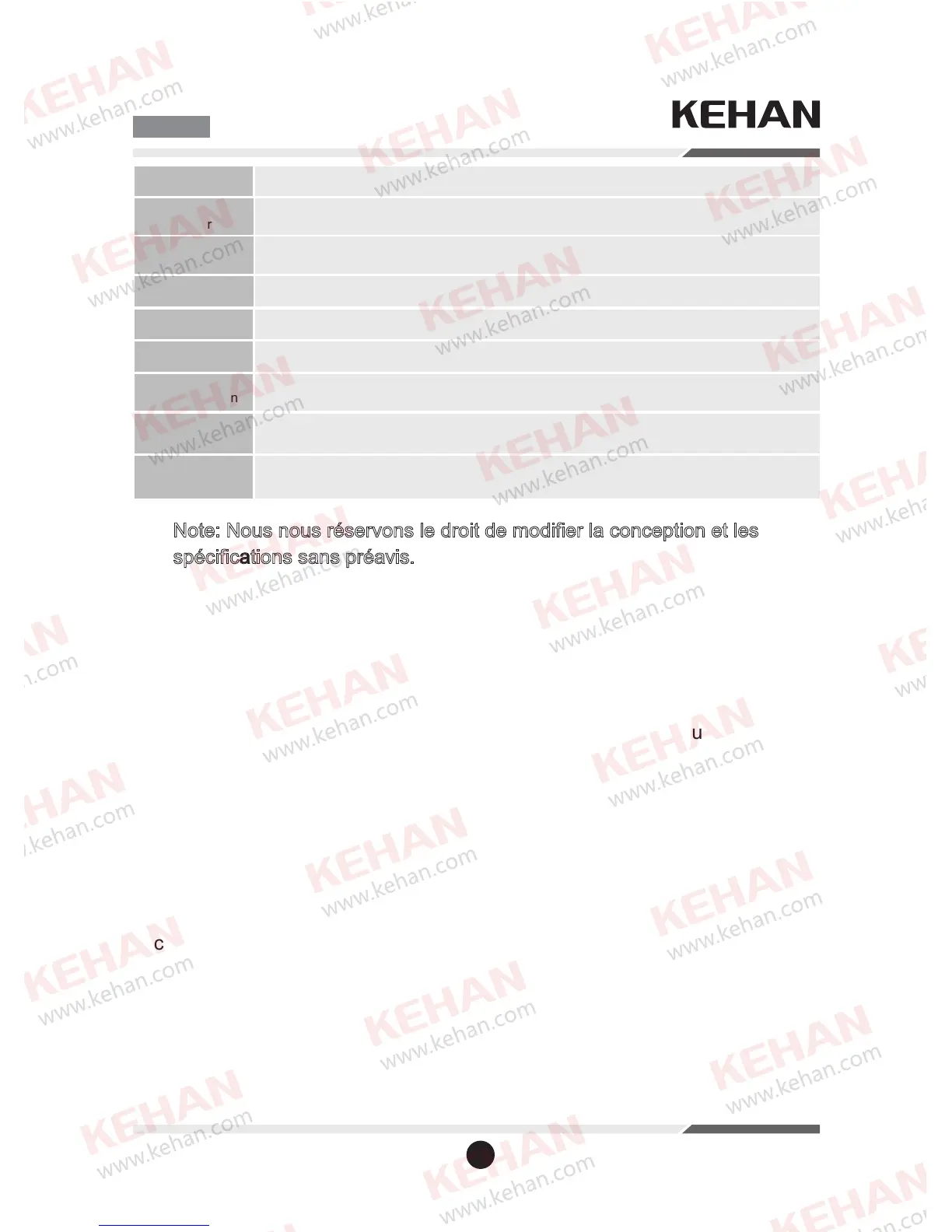 Note: Nous nous réservons le droit de modifier la conception et les