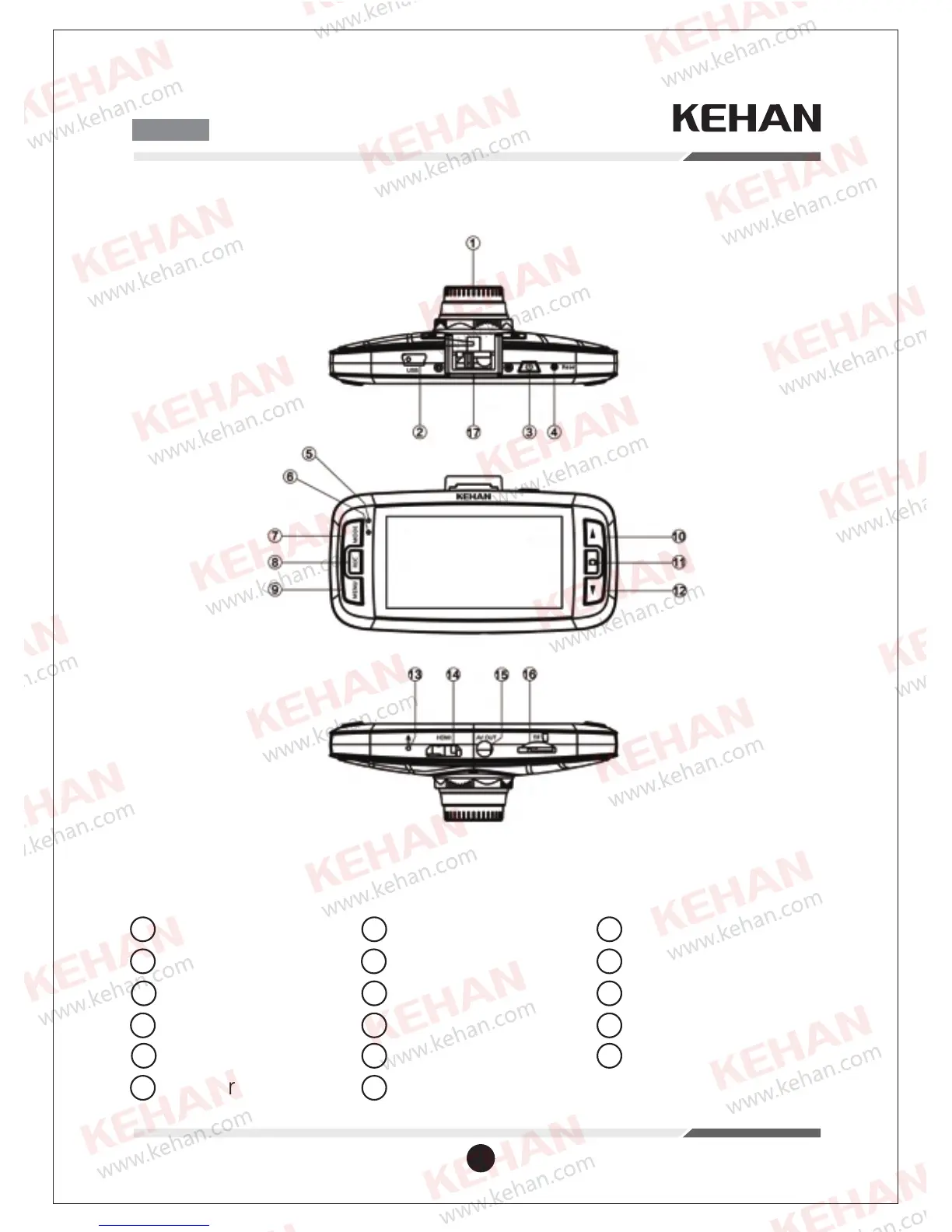 kehan DASH CAM - 2 Composizione del Prodotto E Descrione Dei Pulsanti -2