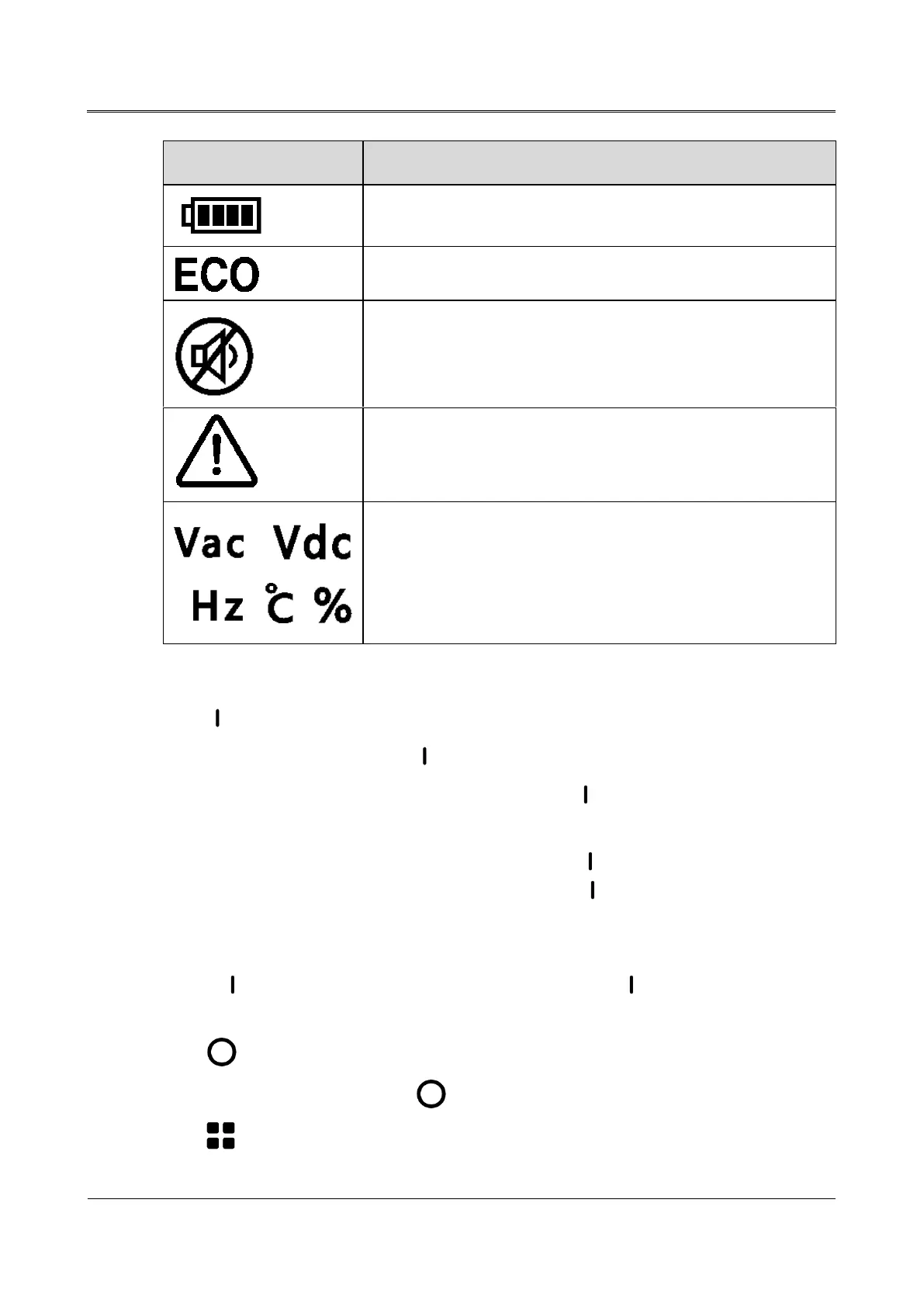 − When UPS is on and in the battery mode, long press " " button for 3s to silence the buzzer