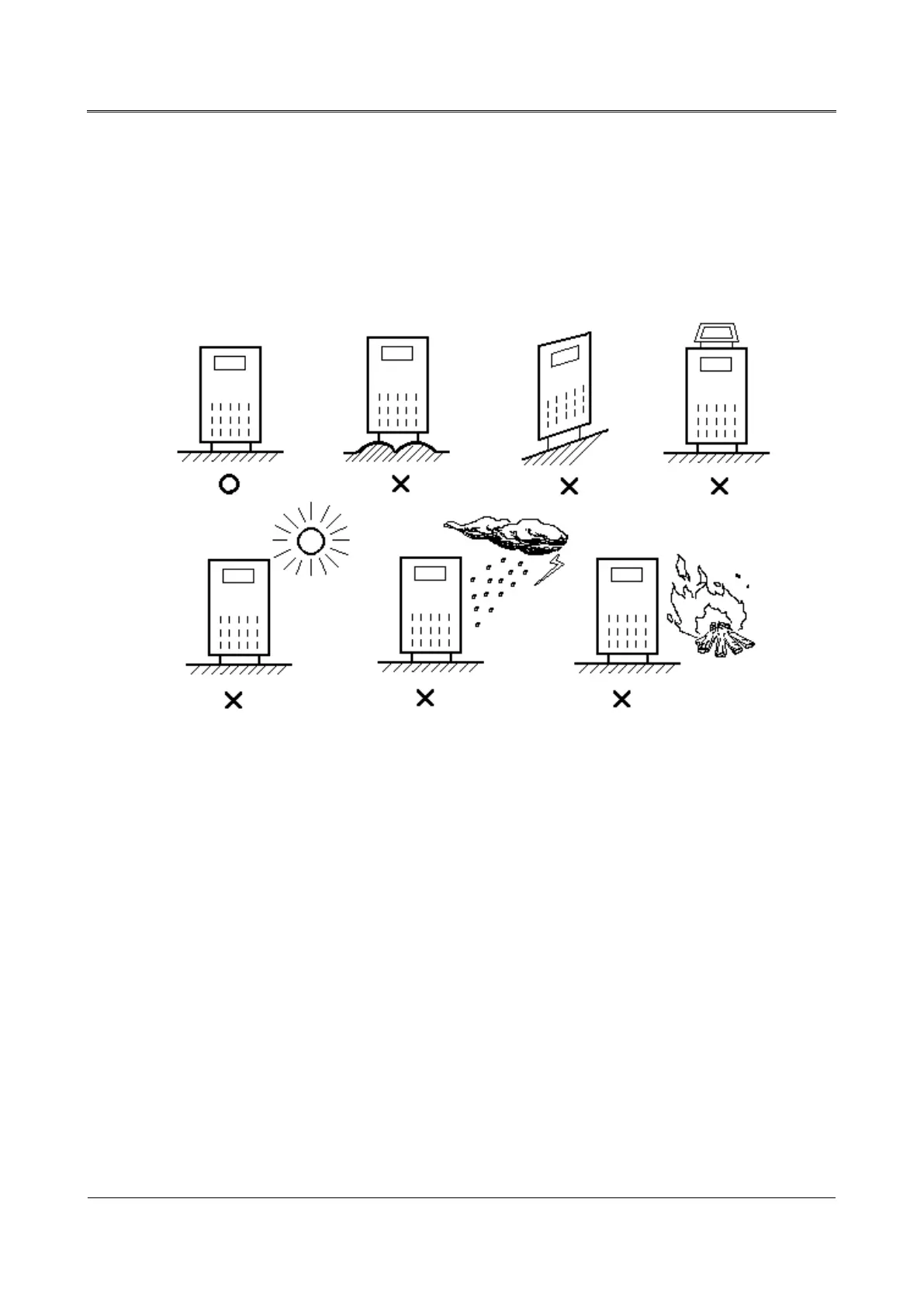 a clearance at least 30cm~50cm around the UPS and 50cm on the top of UPS. Keep the indoor with