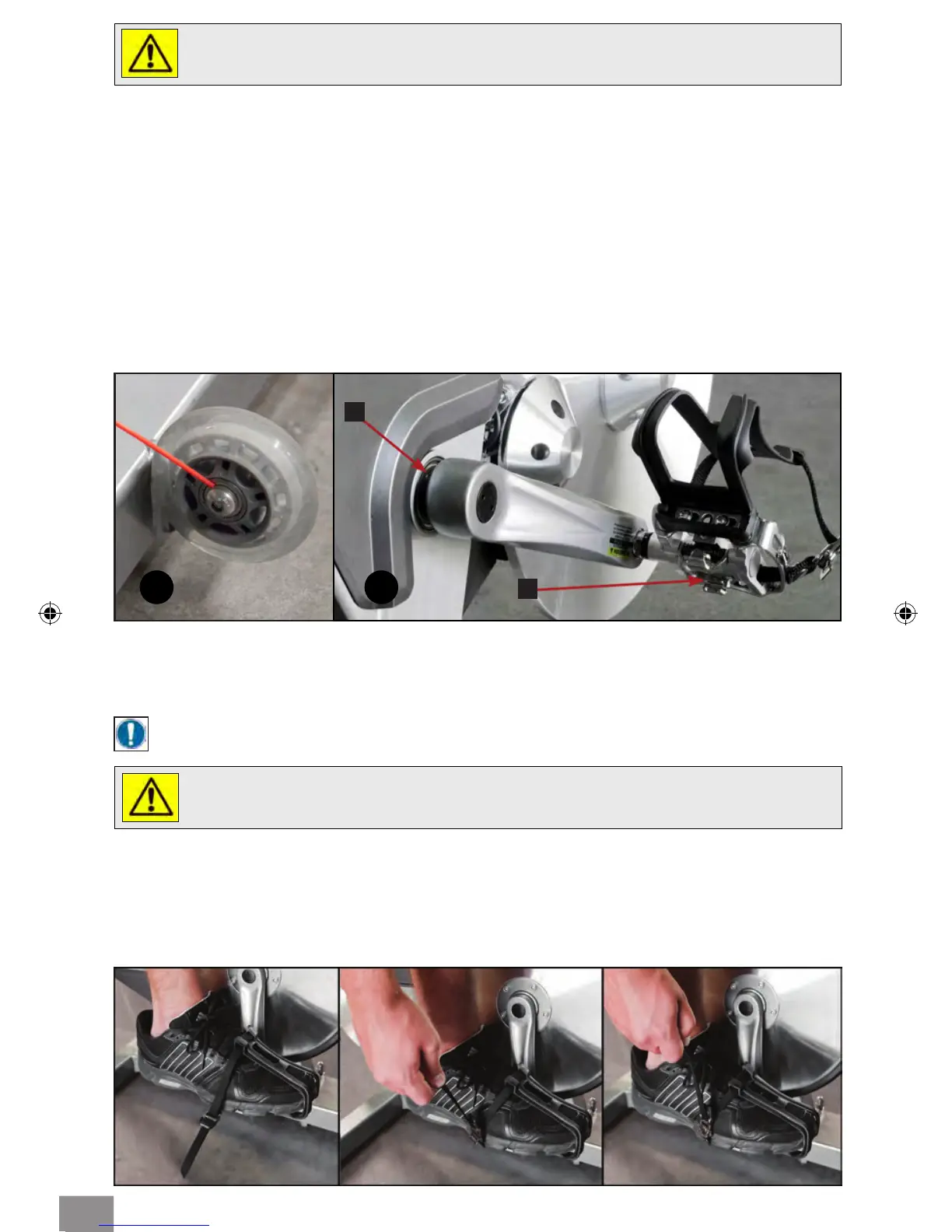 as serious user injury may occur. Always secure the pedal clip strap by placing your foot on the pedal