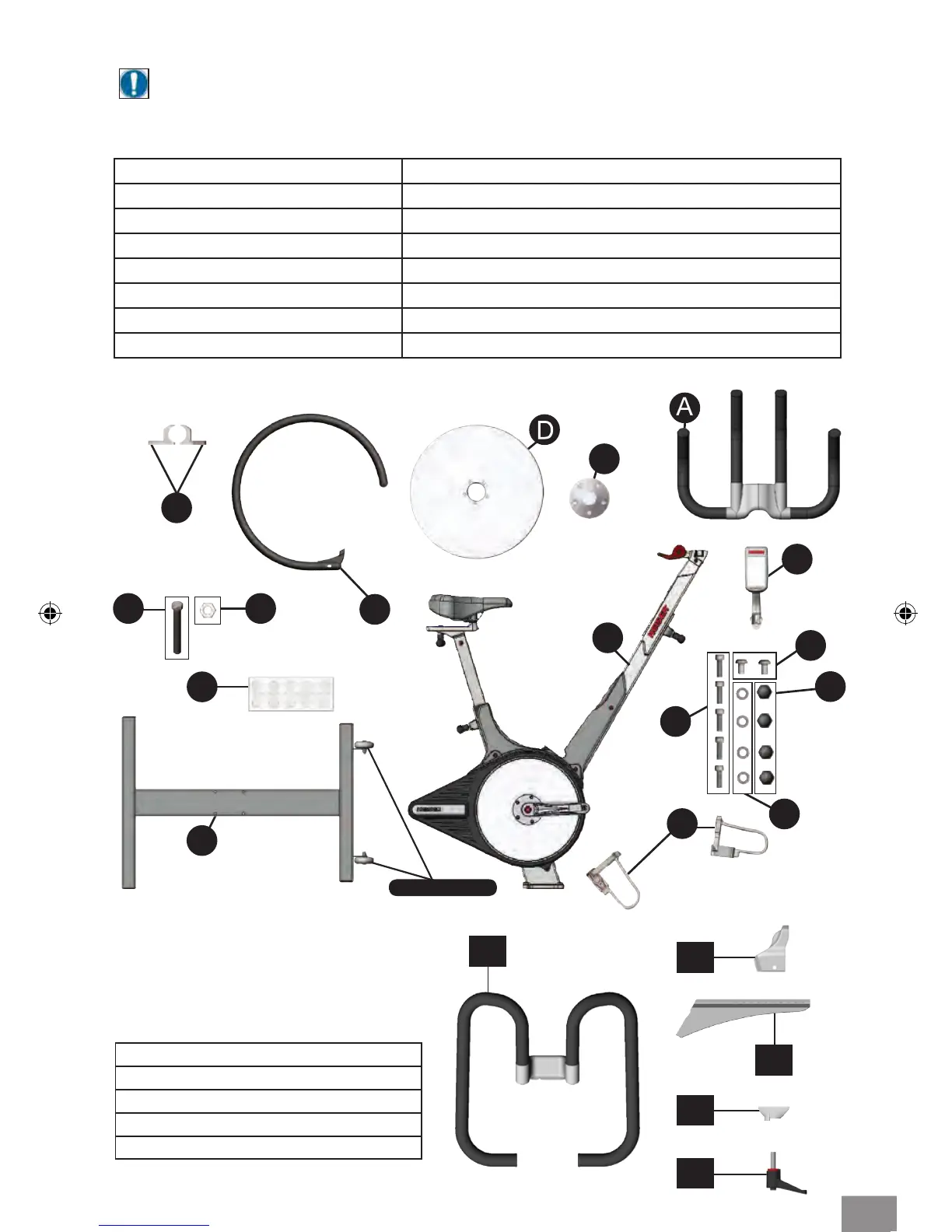 C - Bike Frame (550819/550820) K - Computer (models with computer only)