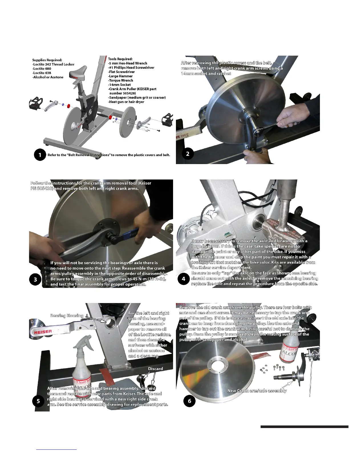 Keiser M3 - Crank Arm and Axle Assembly Operations; Required Supplies and Component Removal; Surface Cleaning and Crank Arm Detachment