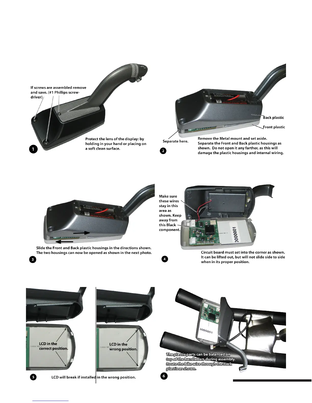 Keiser M3 - Computer Installation Guide; Protecting Display and Separating Housings; Wiring and Circuit Board Placement