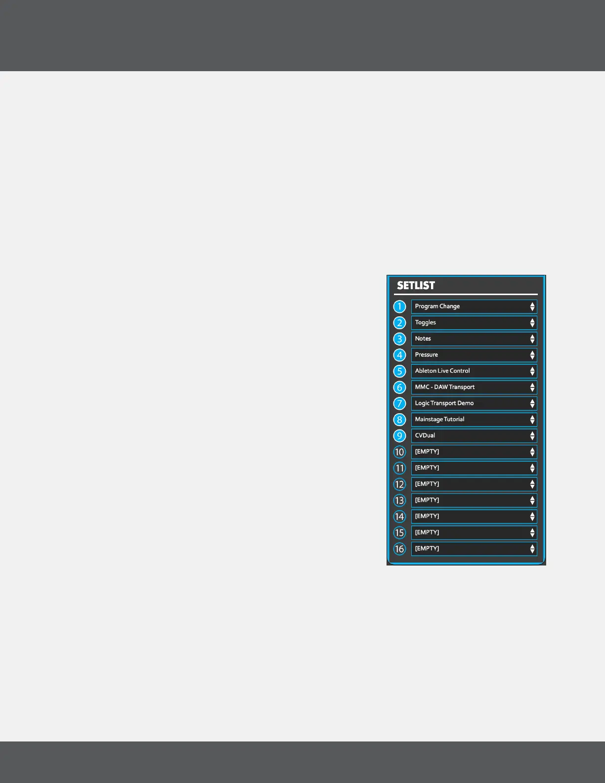 internal memory of the SoftStep hardware� The Setlist allows up to 16