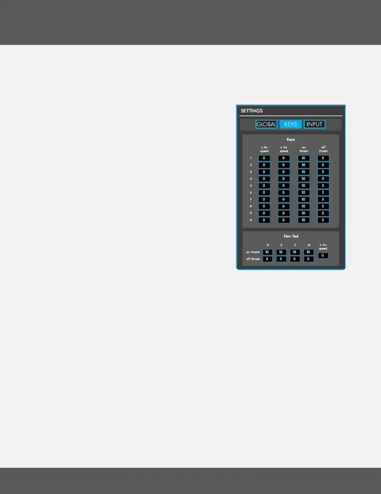 Thresholds and X/Y Increment speeds per key or Nav Pad direction�