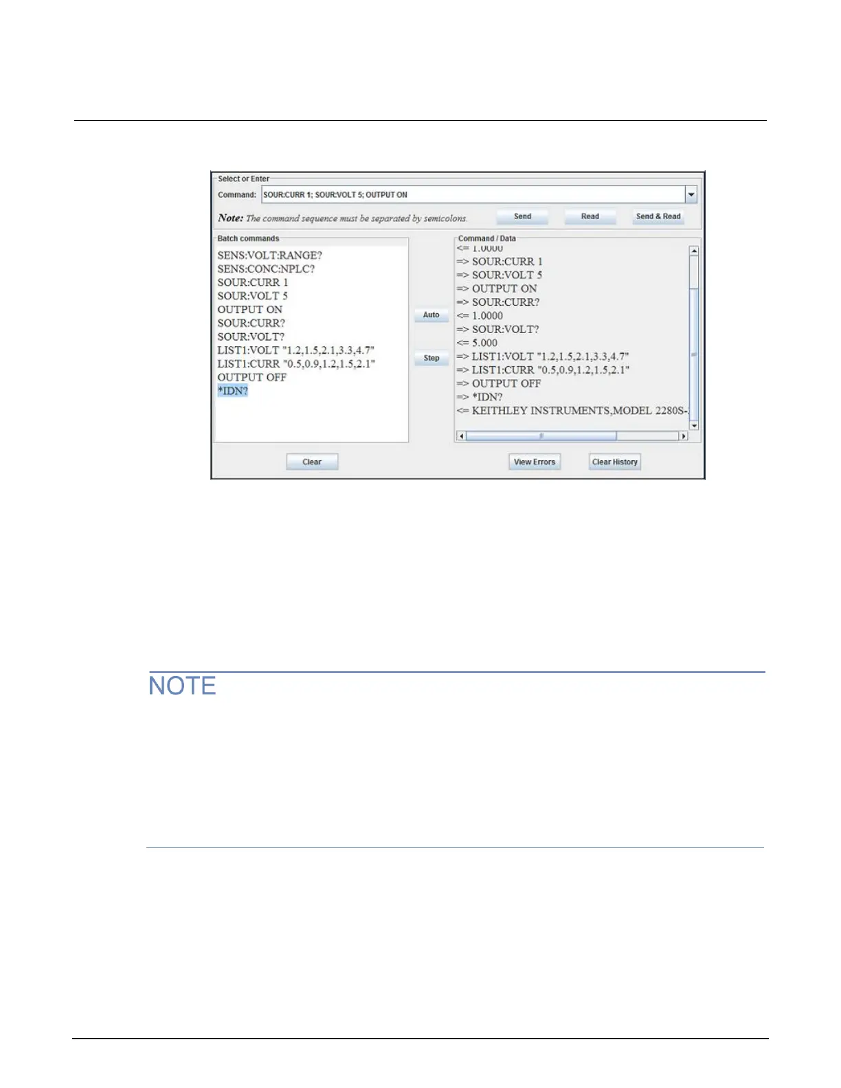 2. In the Command box, enter the SCPI command. You can enter a single command or batch