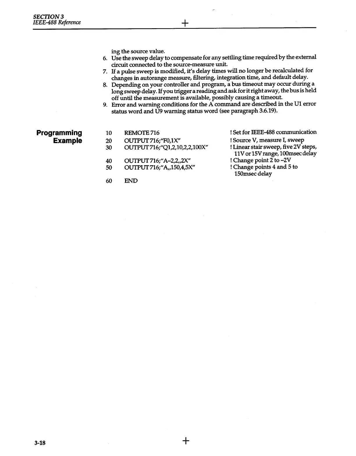 warning conditions for the A command are described