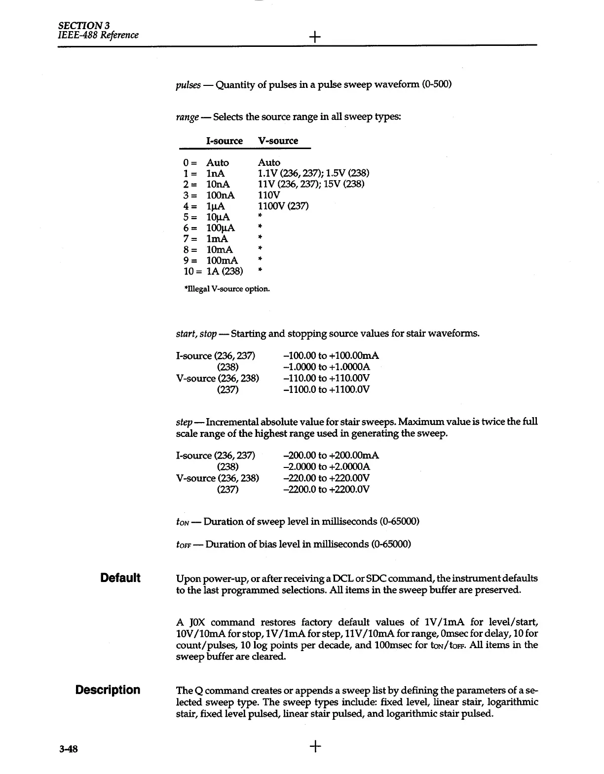 command, the instrument defaults