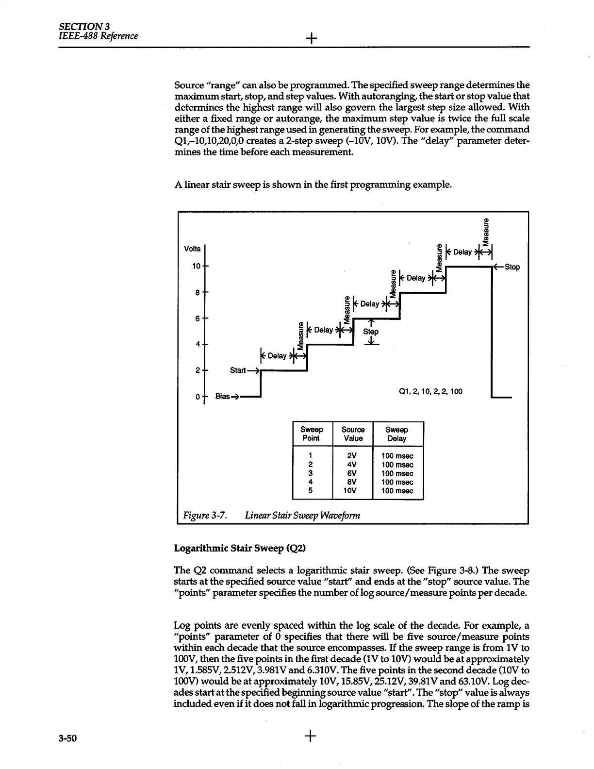 The Q2 command selects a logarithmic stair sweep. (See Figure 3-8.) The sweep