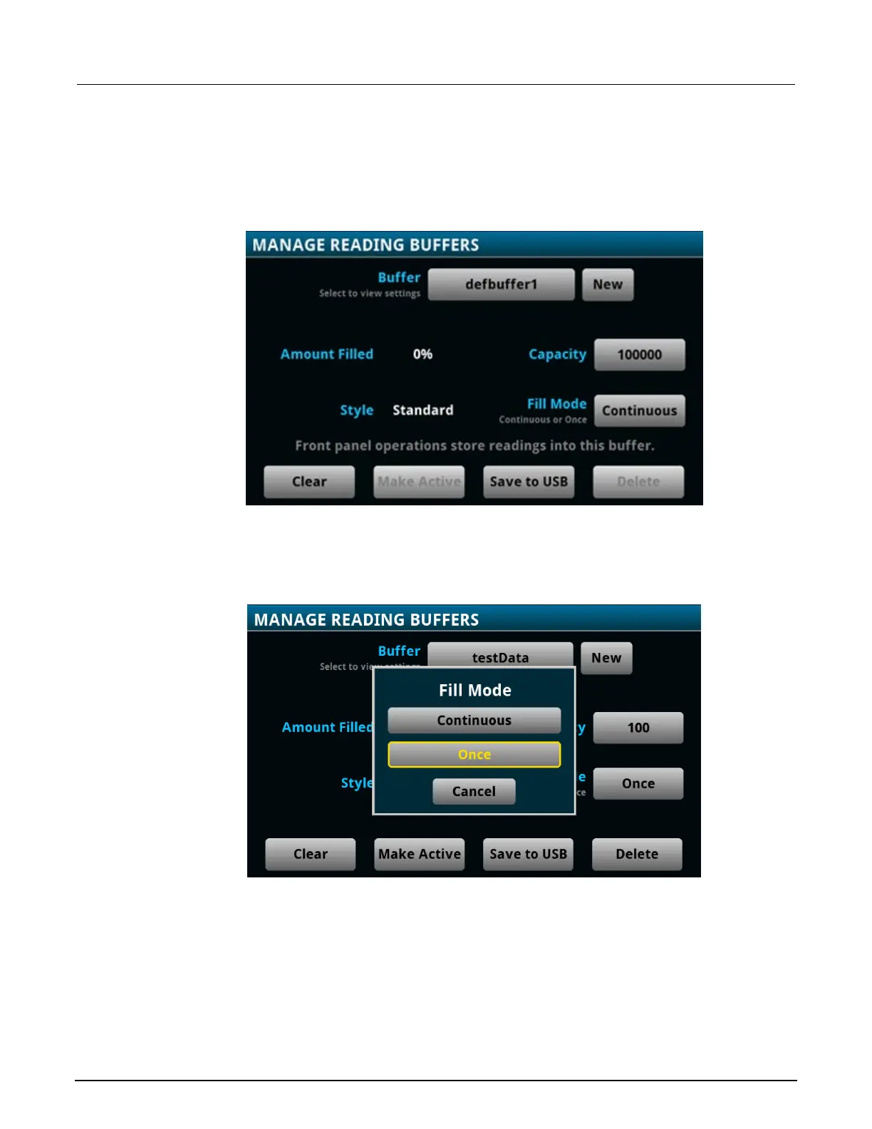 3. Select a reading buffer from the list. For example, select testData. The settings for testData
