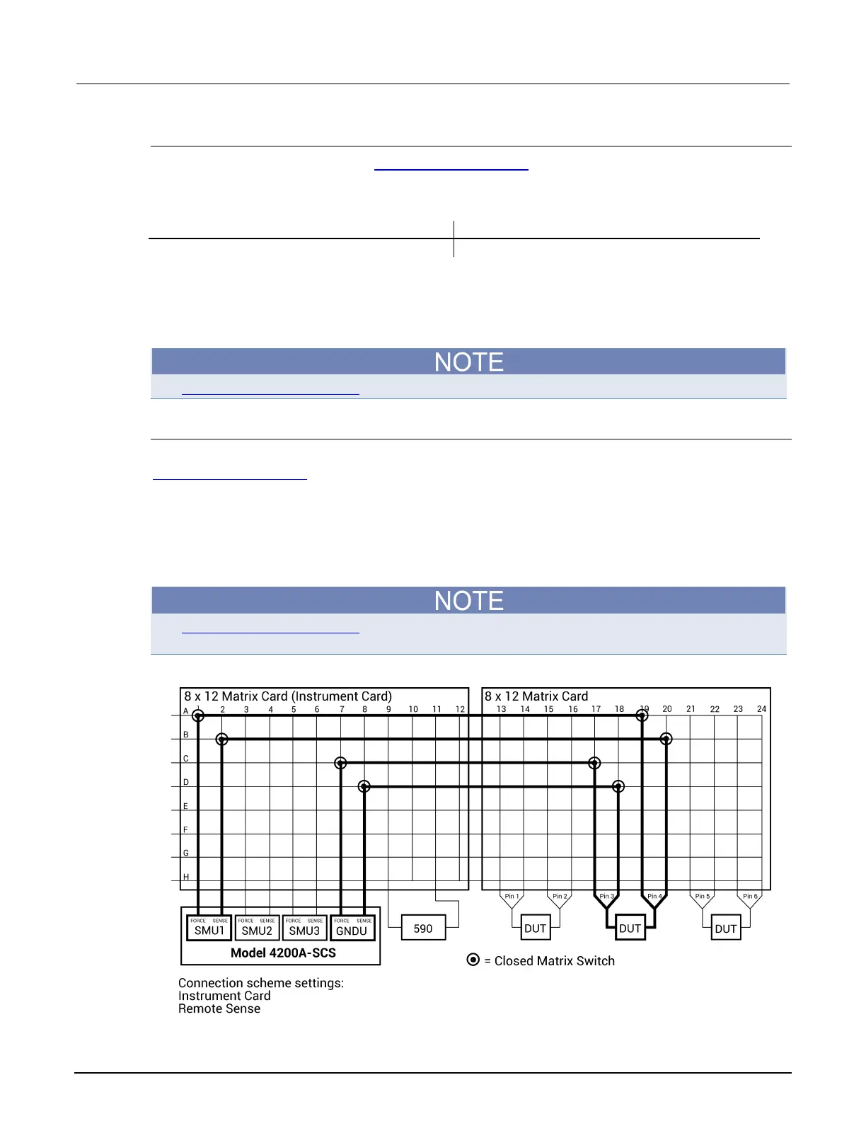 The figure below shows a test system with both the instruments and the DUT connected to matrix