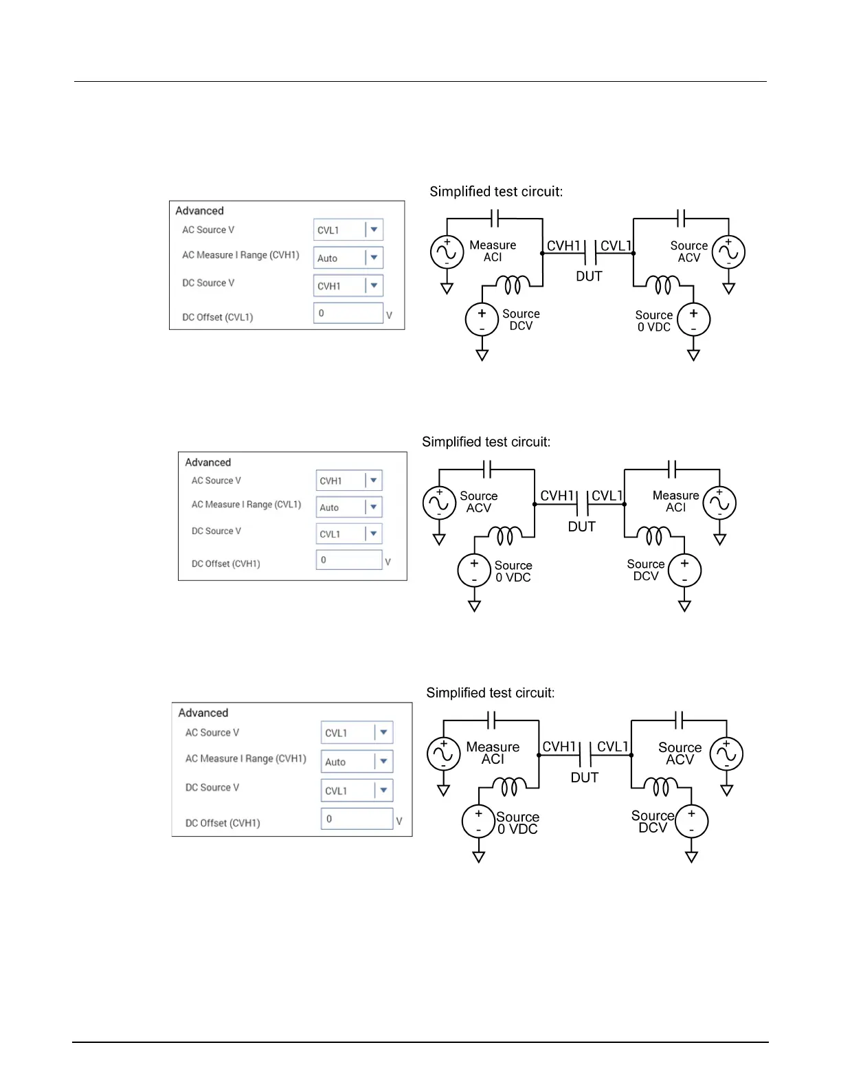 The following settings source AC drive voltage and DC bias voltage to the CVL1 terminal. AC current