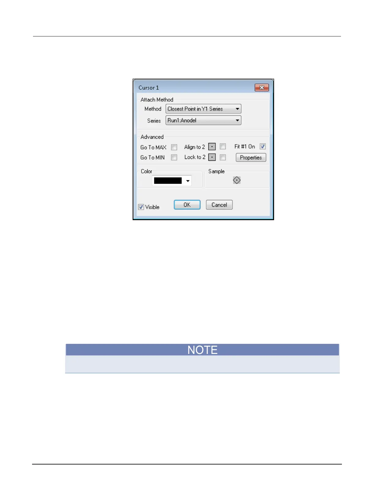 9. Click OK. If Visible is selected, the cursors and their related text blocks are displayed on the