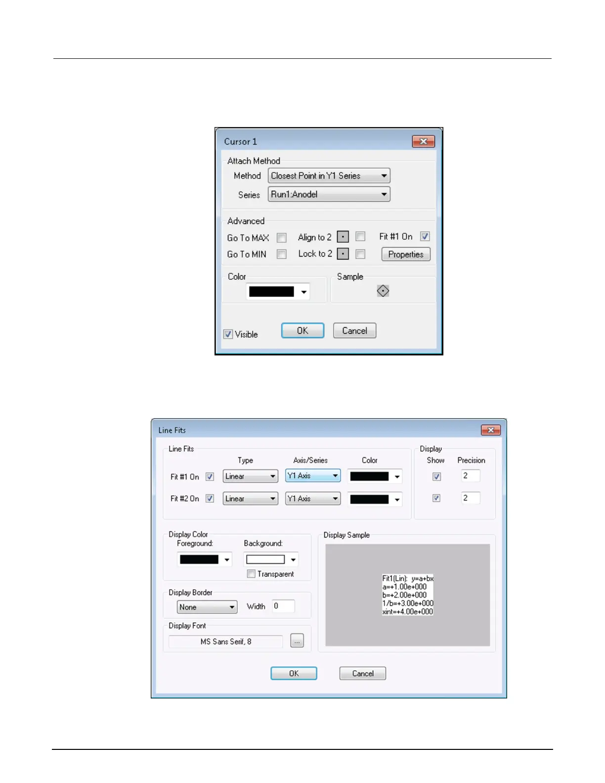 6. Select Properties under Fit # On. The Line Fits dialog box is displayed, as shown in the following