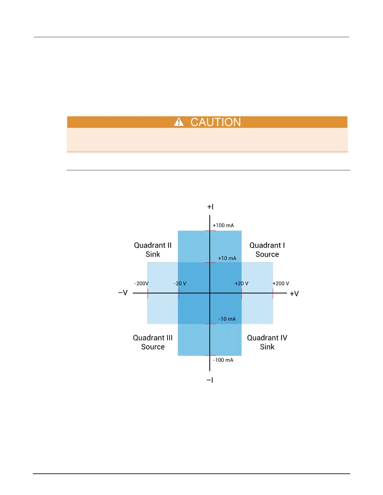+10 V, sink operation for the first SMU will occur in the second quadrant (source +V and measure −I).