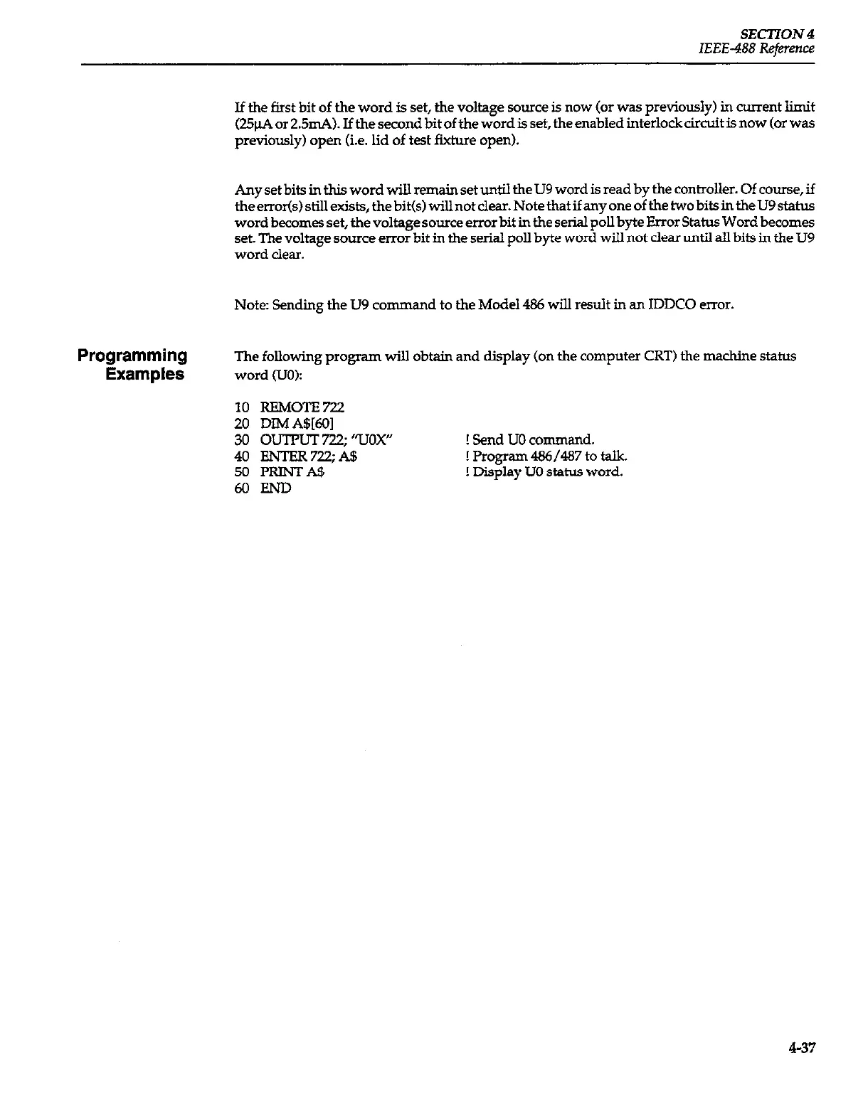 set. The voltage source error bit in the serial poll byte word will not clear until all bits in the U9
