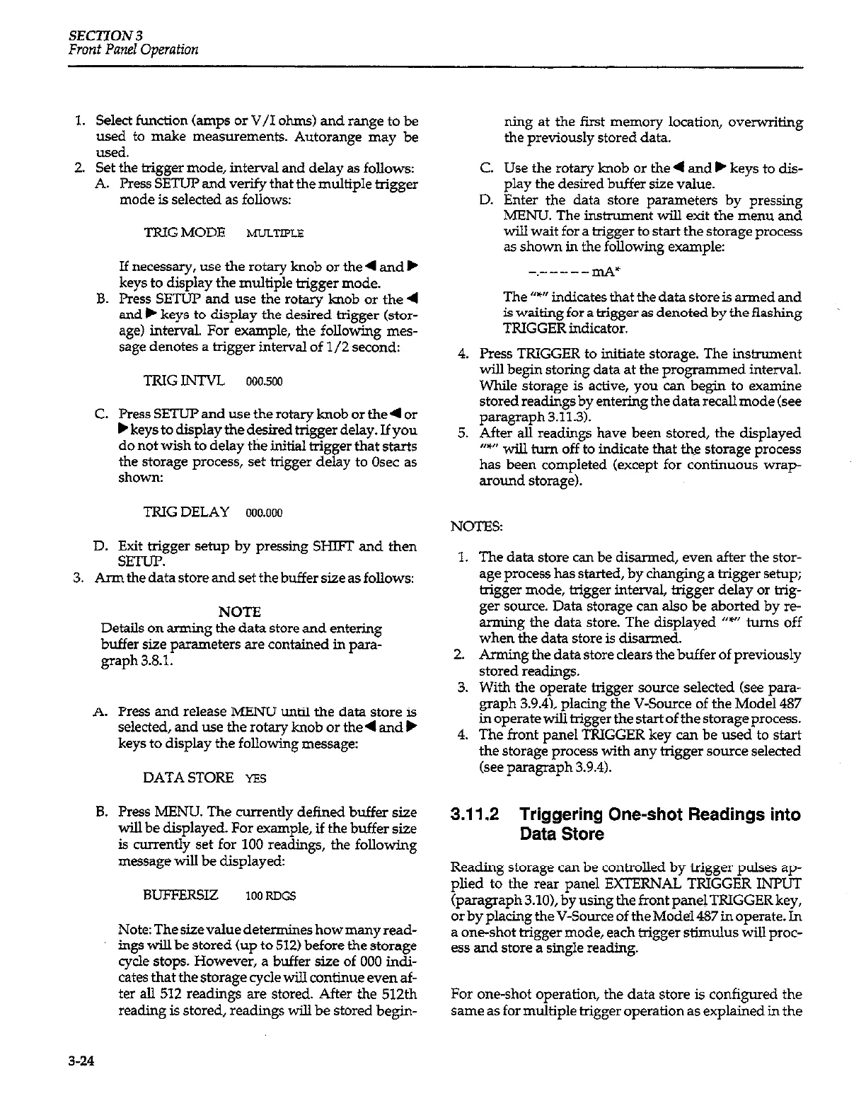 (paragraph 3.10), by using the front panel TRIGGER key,
