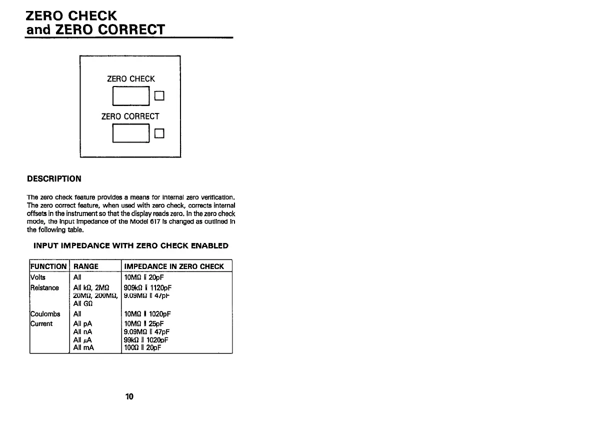 mode, the input impedance of the Model 617 is changed as outlined in