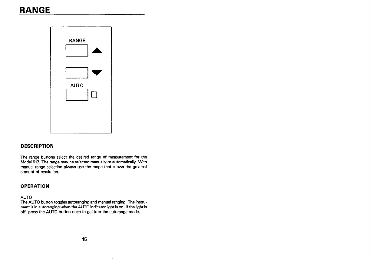 The AUTO button toggles autoranging and manual ranging. The instru-