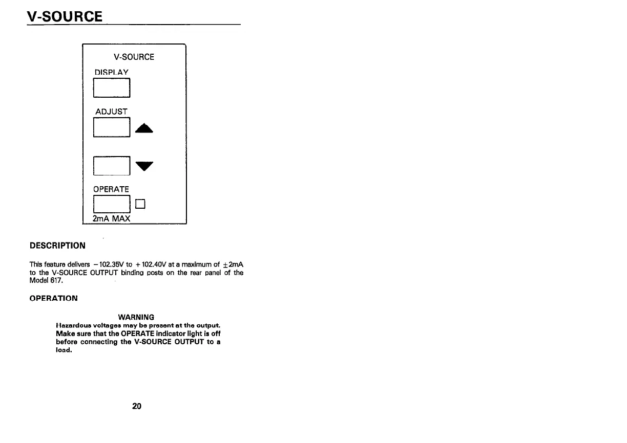 to the V-SOURCE OUTPUT binding posts on the mar panel of the