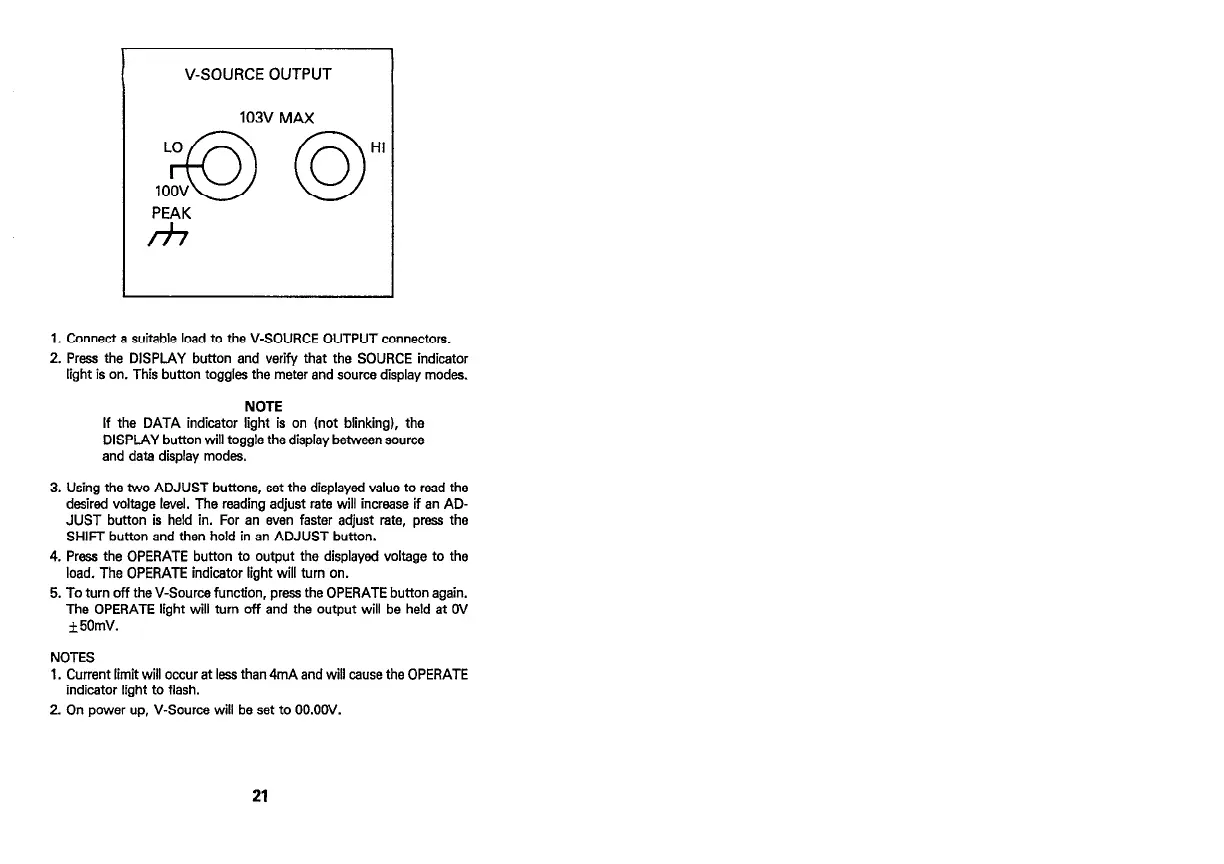 1. Connect a suitable load to the V-SOURCE OUTPUT connectors.