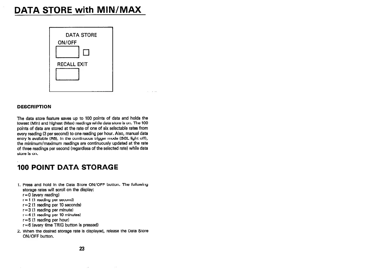 lowest (Anin) and highest (Max) readings while data store is on. The 100