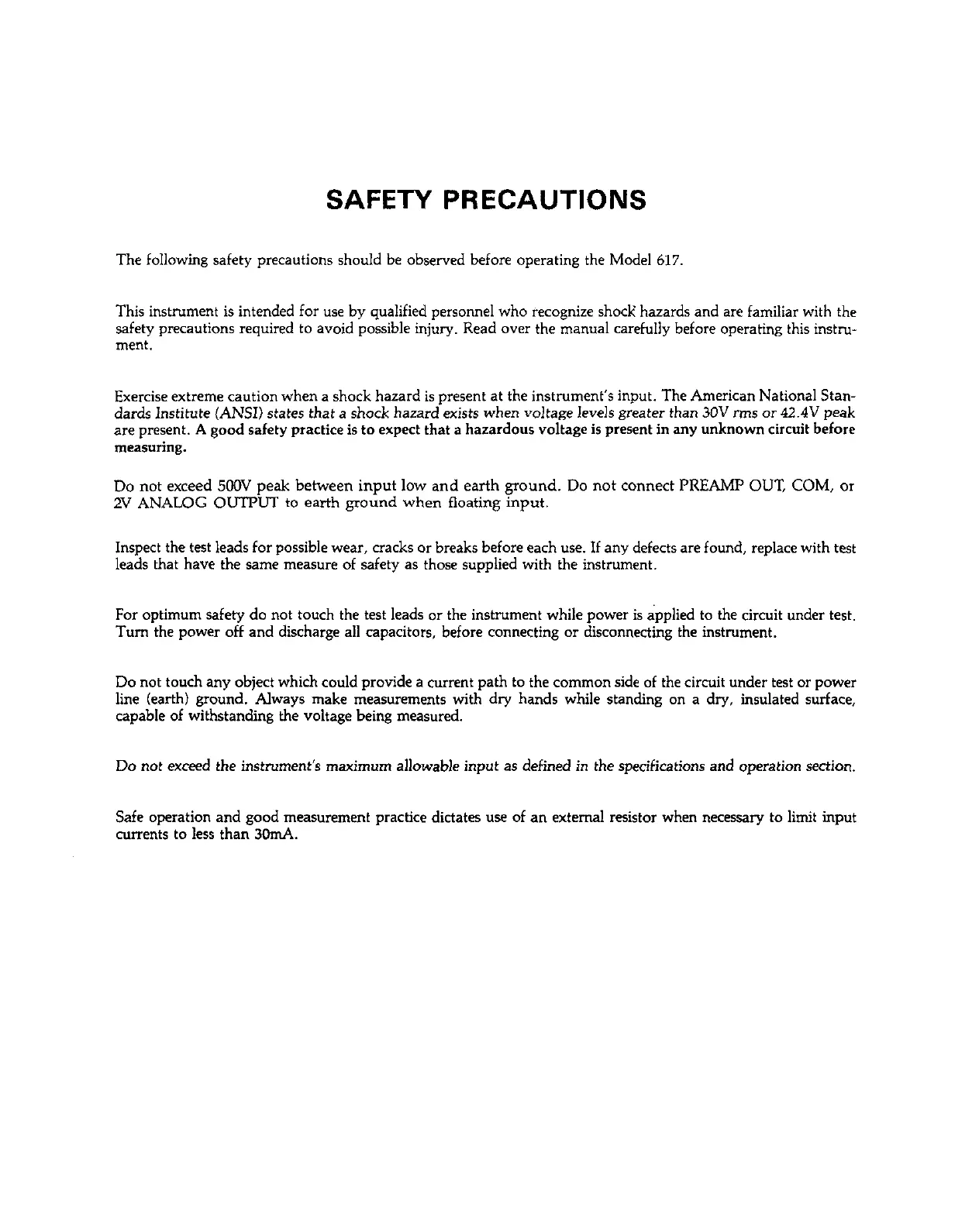 Exercise extreme caution when a shock hazard is present at the instrument’s input. The American National Stan-