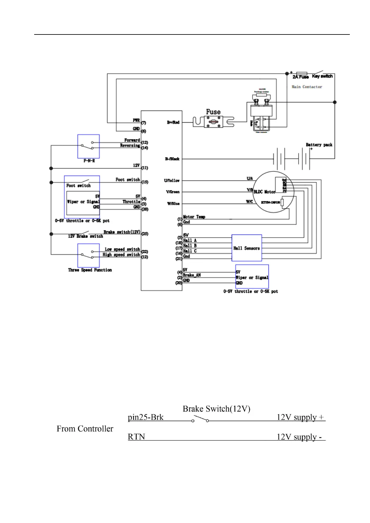 Figure 12: Wiring of brake switch(12V): 12V is provided by external source.