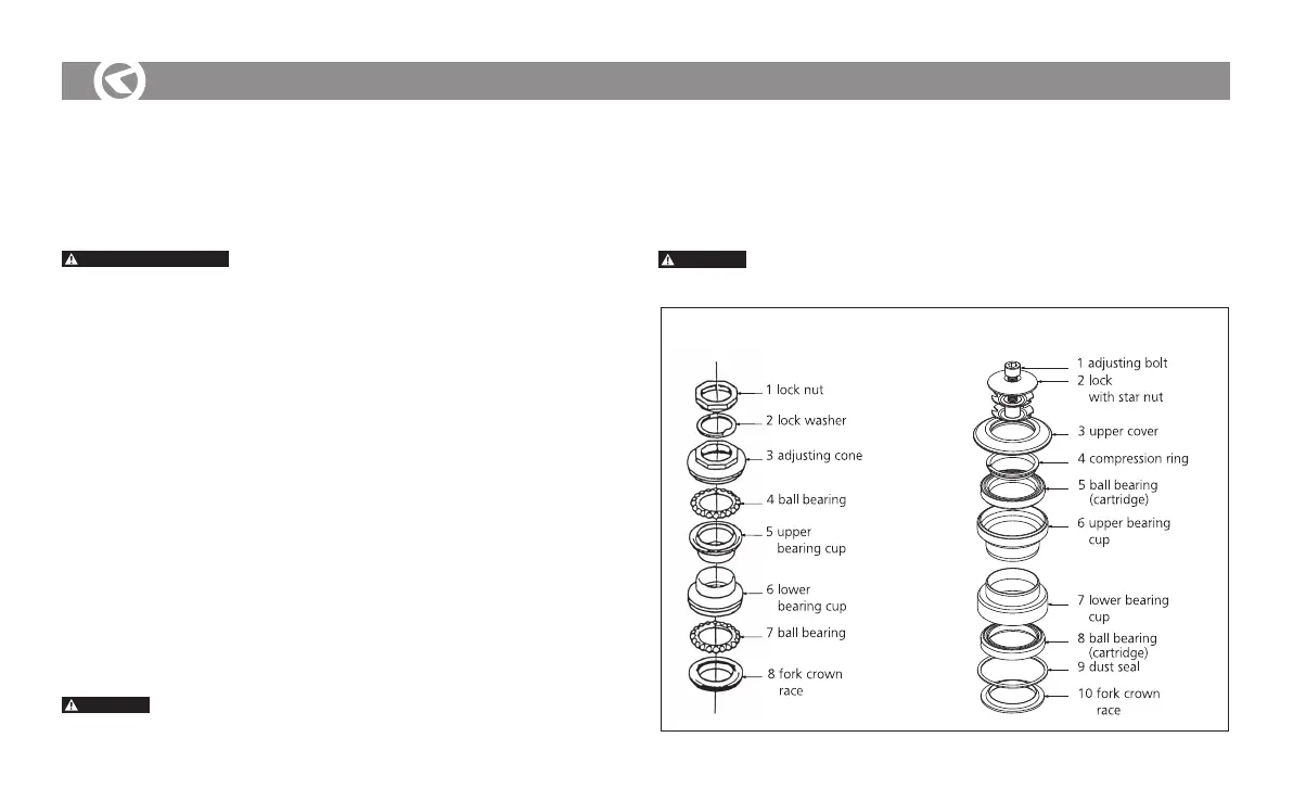 Before ride, make sure that the fork is turning easily, but without a loose, in the head set.
