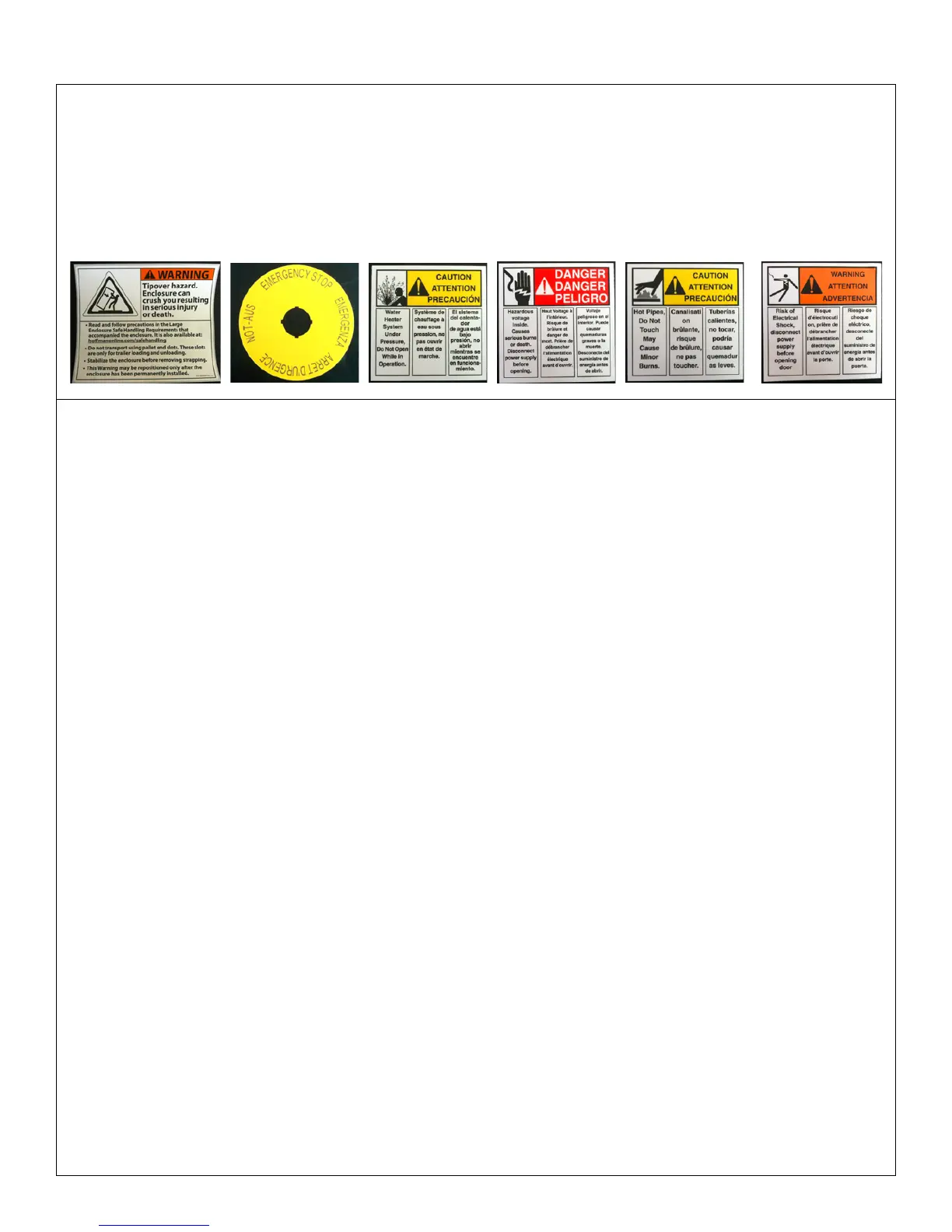 IMPORTANT! For safe operation of the heater, observe all the warning labels as indicated. Sample labels