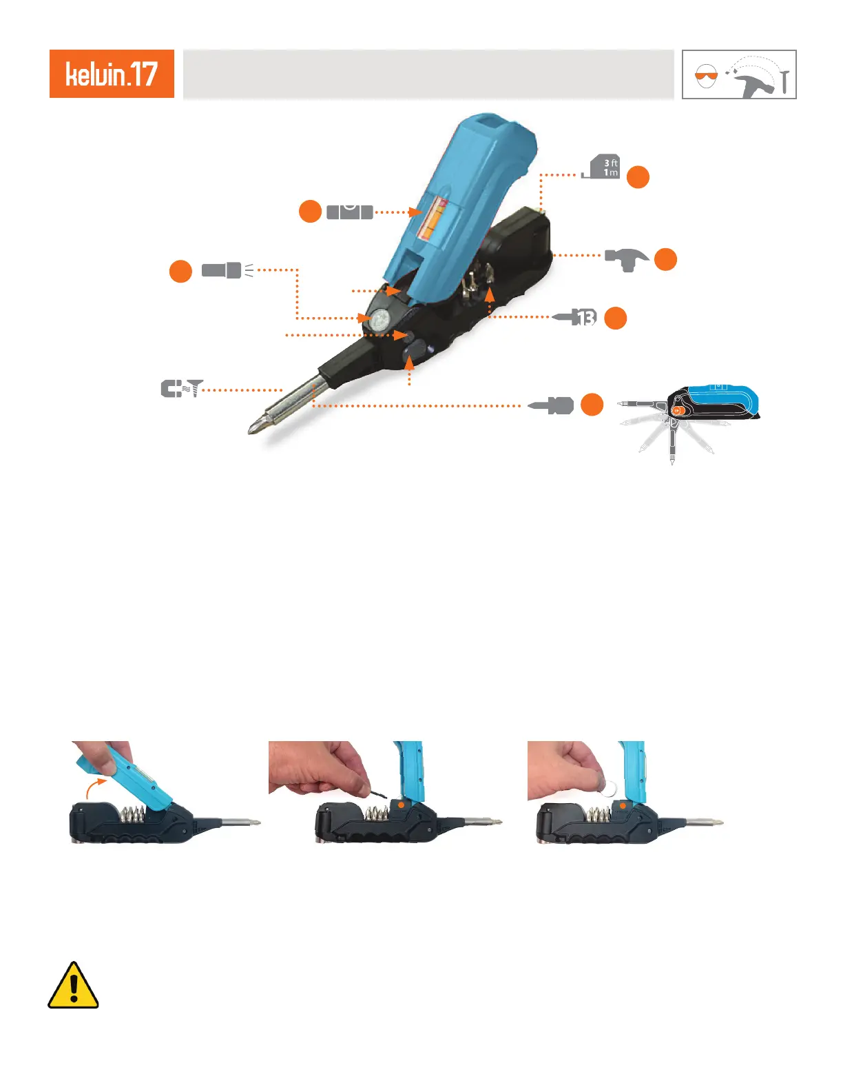 3. MARTEAU MINIATURE : Replier l’outil pour utiliser le marteau.