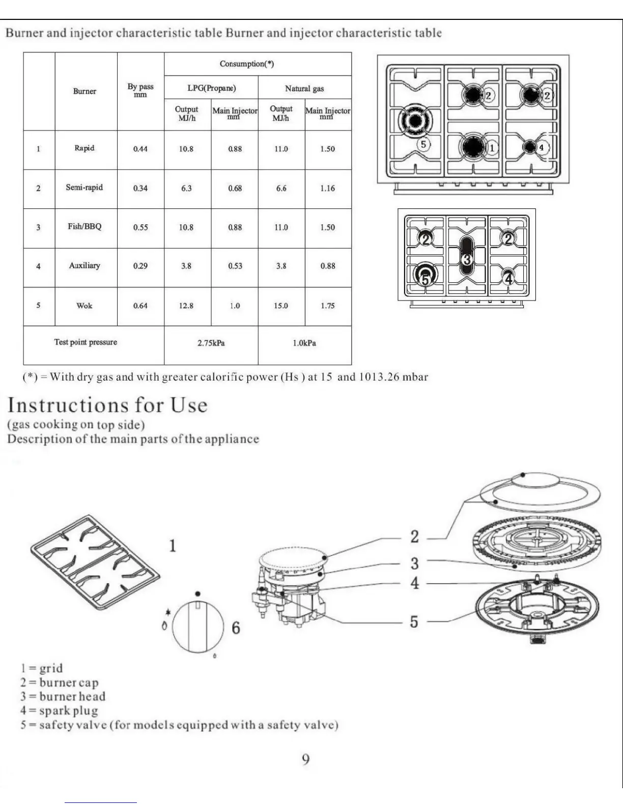 Kelvinator KC9650BL - Burner and Injector Characteristics Table; Appliance Part Identification