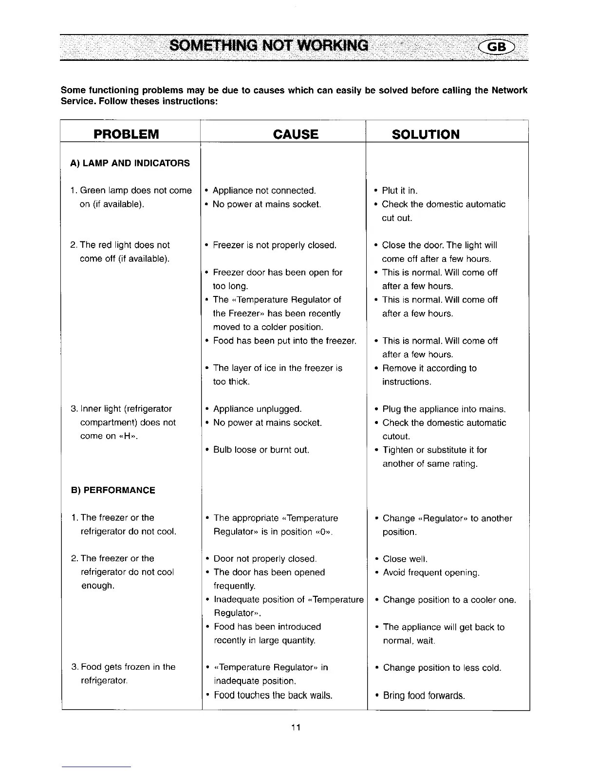 Kelvinator KCB340 - Troubleshooting Guide; Lamp and Indicator Issues; Performance Issues