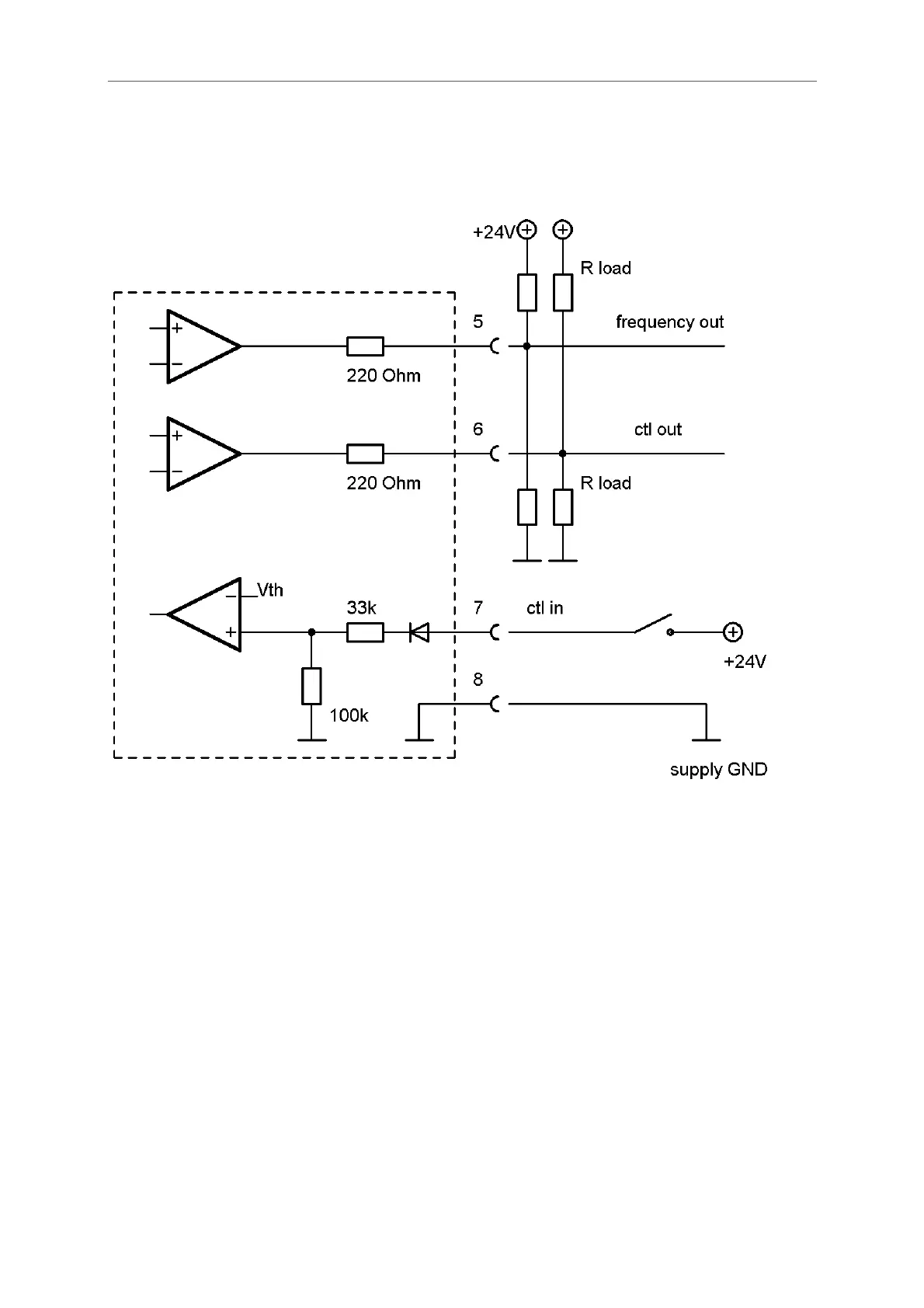 The frequency and control outputs are active push-pull outputs with an output resistance of 220. They can be