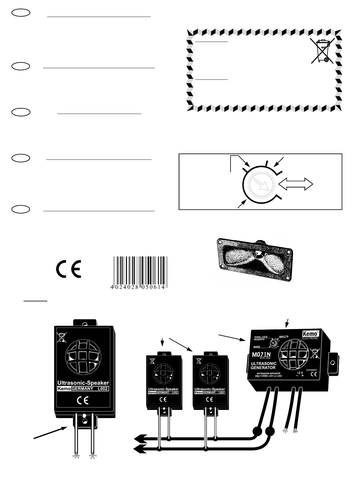 Possibility to connect max. 4 additional loudspeakers, type Kemo L001 or L002. The