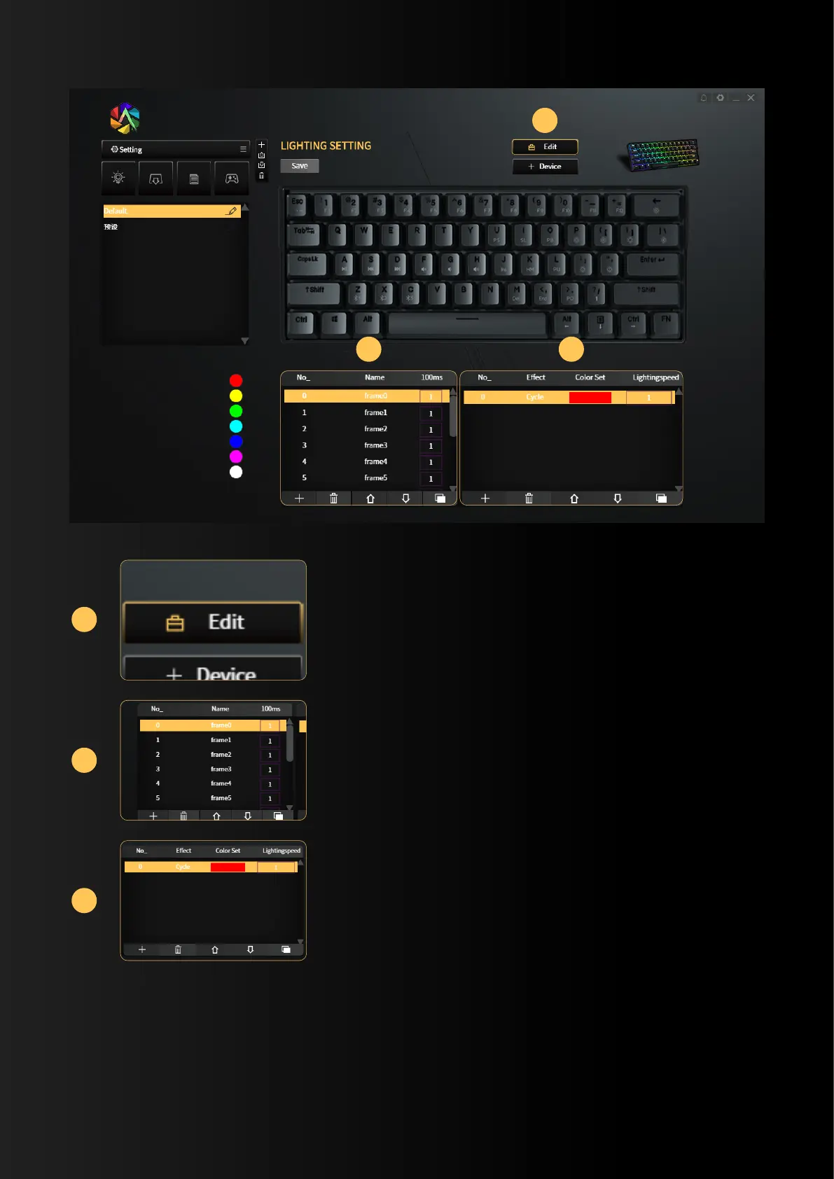 Kemove 61 - Advanced Lighting Configuration; Custom Lighting Areas; Lighting Effect Presets