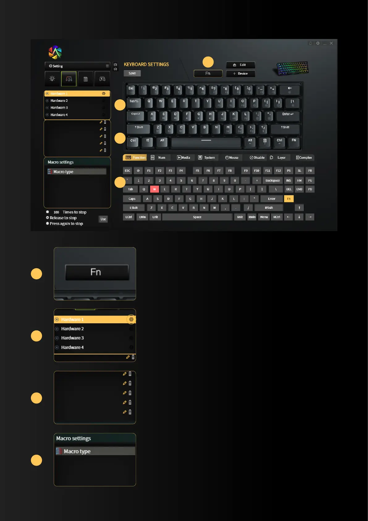 Kemove 61 - Keyboard Settings Management; FN Key Combination Settings; Hardware Layer Configuration; Macro Settings