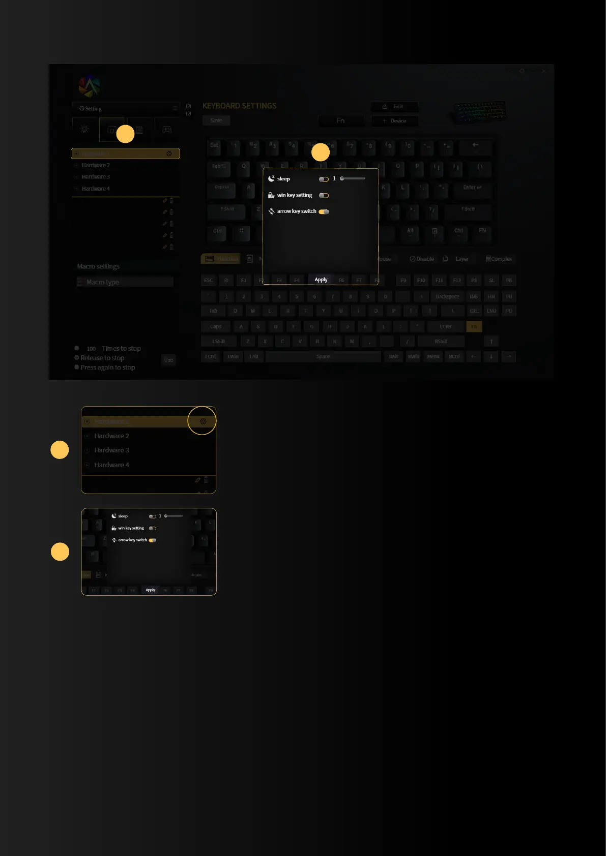 1.Click the "Settings" button next to the hardware settings